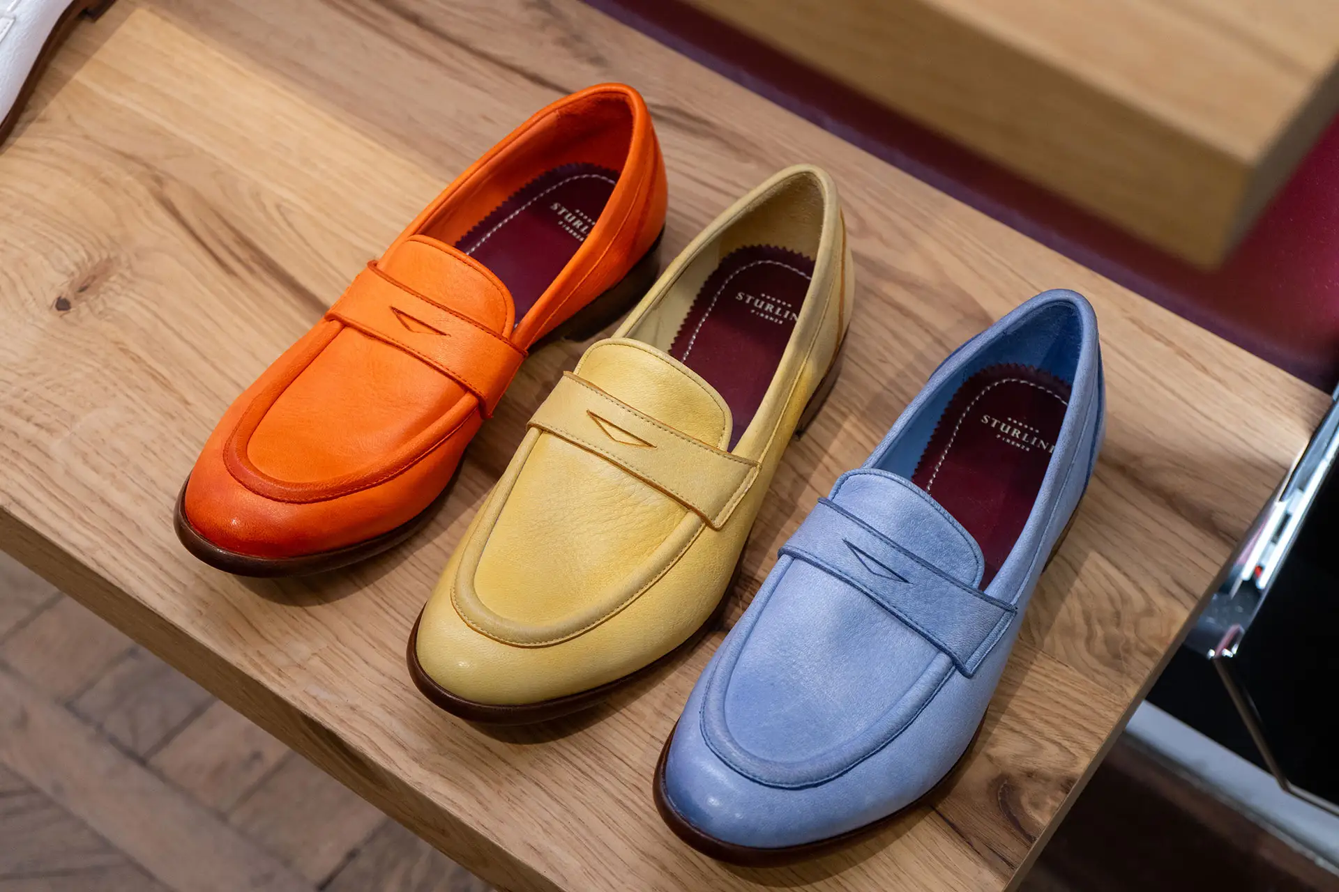 Sturlini Firenze, a key player in the tinto in capo footwear industry, and 19 Andreas 47, another significant presence of Made in Tuscany for hand-dyed fabrics.