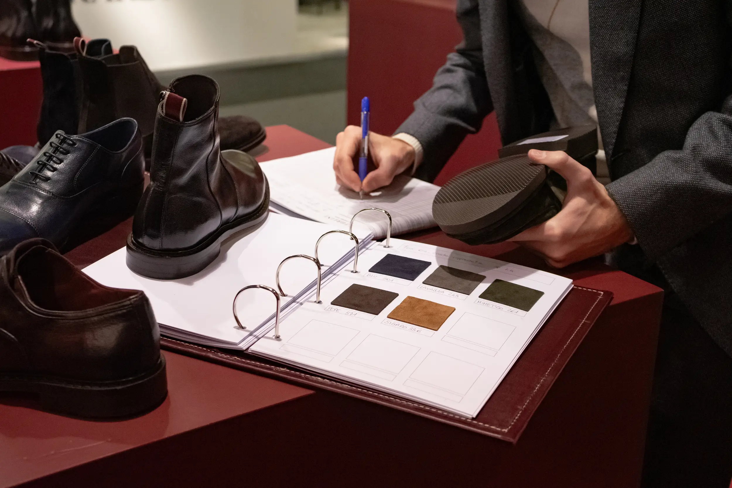 Sturlini Firenze, a key player in the tinto in capo footwear industry, and 19 Andreas 47, another significant presence of Made in Tuscany for hand-dyed fabrics.