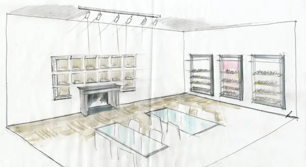 Concept made with simple materials of the Tuscan tradition, such as iron, oak wood, woven fabric and wine-colored leather, enhance the craftsmanship and identity of the brand.