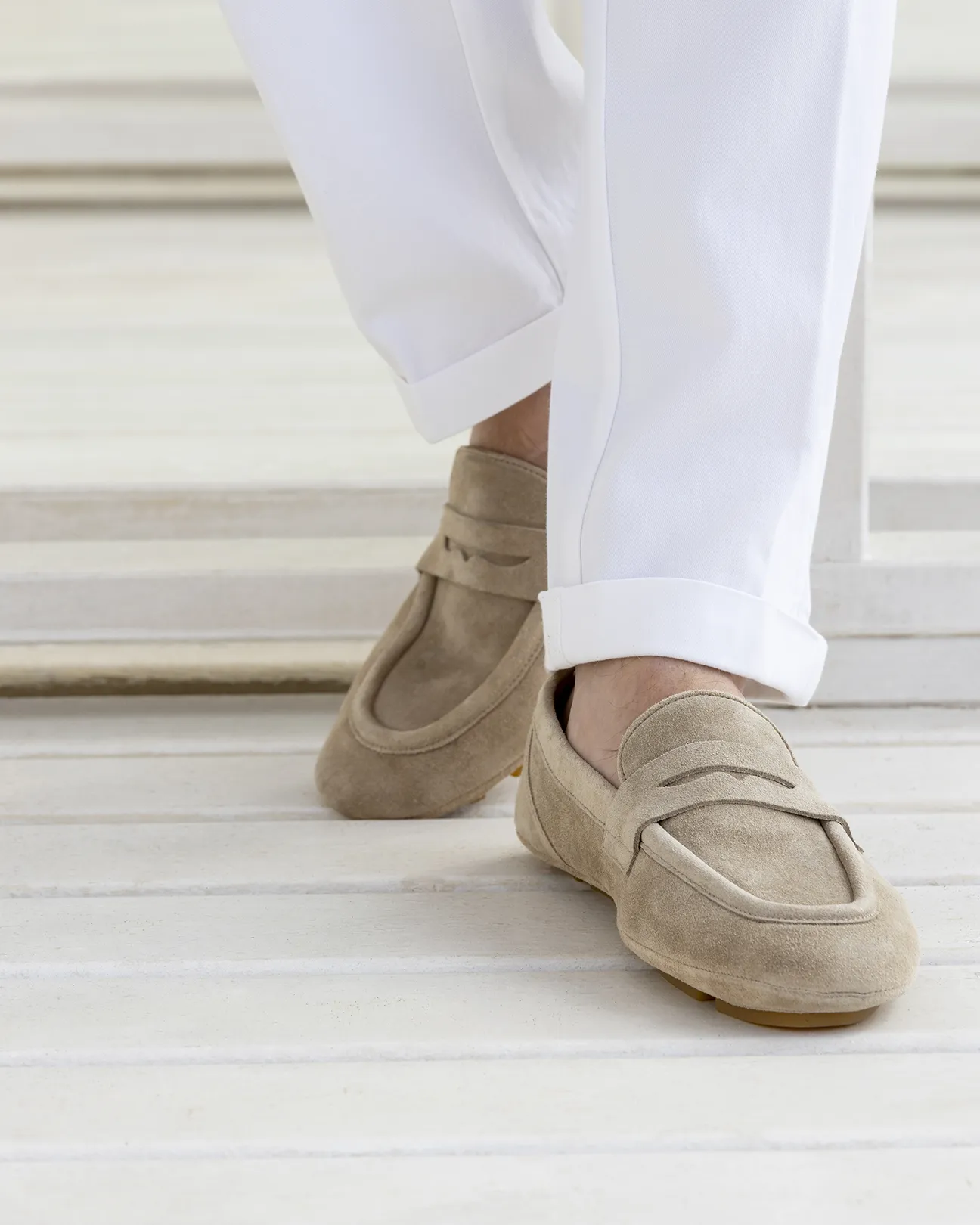 Penny loafer in sand-colored suede